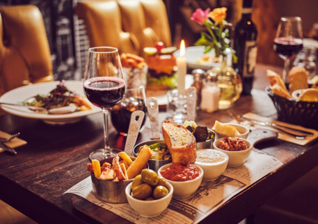 En vacker och mysig lokal med inriktning på ett internationellt, medelhavsk kök och en lounge-avdelning.